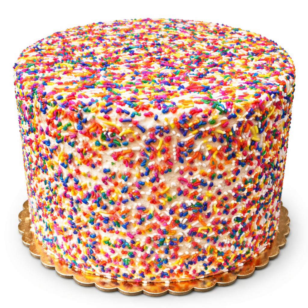 GLUTEN FREE FUNFETTI CAKE! Three Layer of Vanilla Cake Layered with Vanilla Buttercream and Rainbow Sprinkles Topped with More Delicious Vanilla Buttercream and More Rainbow Sprinkles!