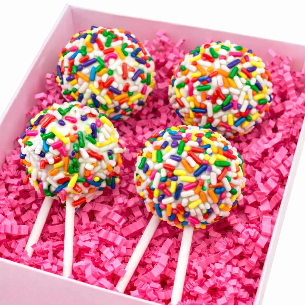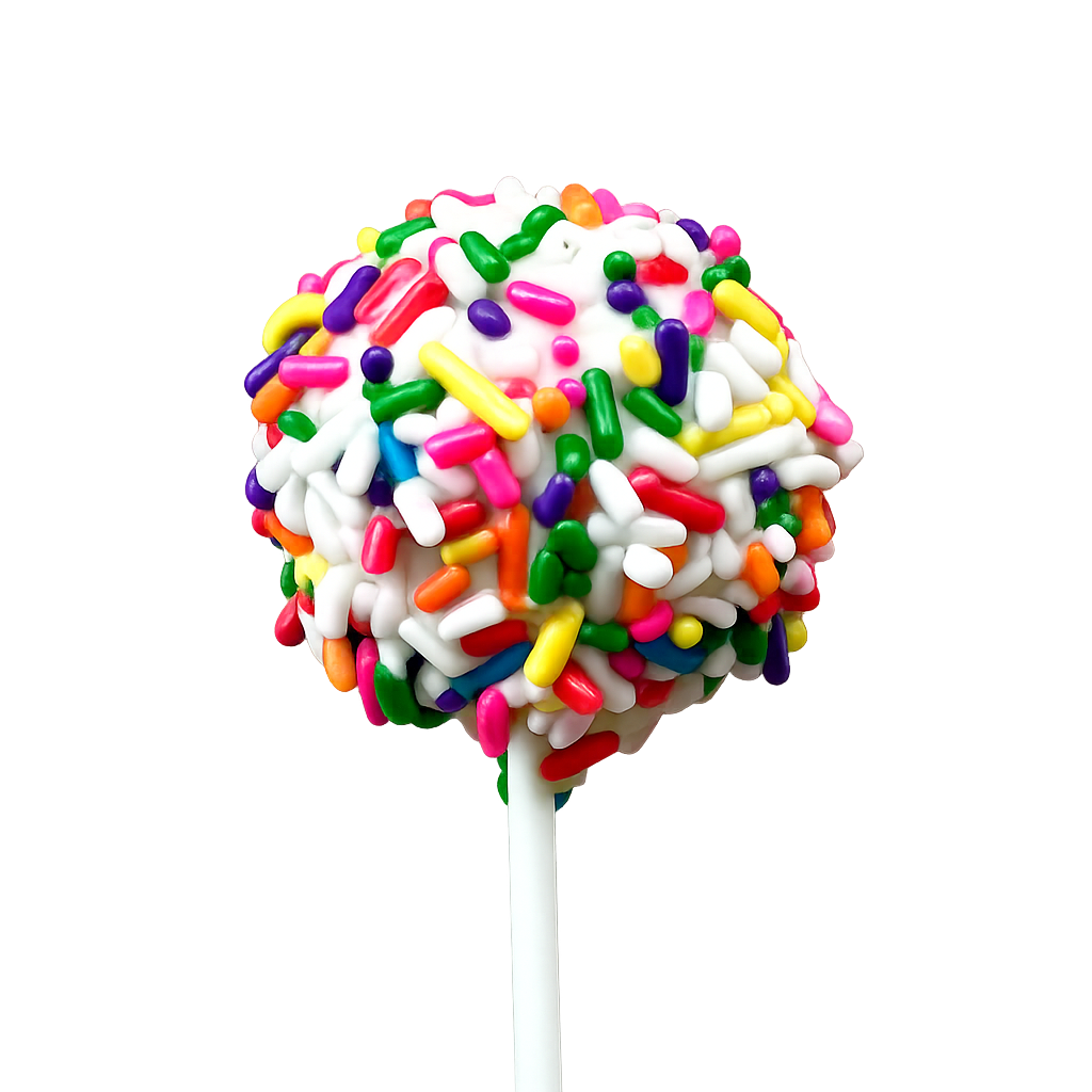 GLUTEN FREE FUNFETTI CAKEPOP! Delicious Vanilla Cake Filled w/ Vanilla Buttercream and Rainbow Sprinkles Covered in White Chocolate and Rainbow Sprinkles!